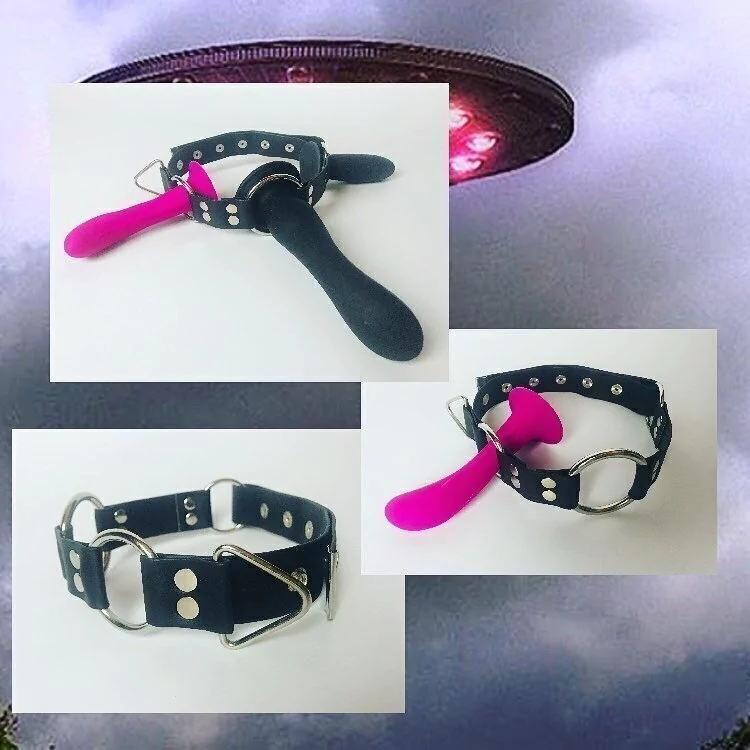 Arnés piernero ADP para dildo/s - con argollas para distintos tamaños de dildos y pase para colgar y exponer tus juguetes -Rosa o Negro - Ucronía.