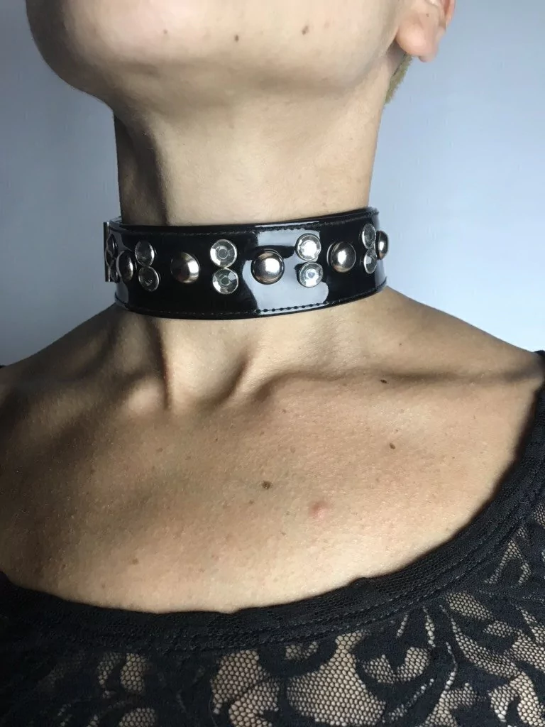 Esta línea de chokers es la nueva colección 2021 llamada GTL, es 100% artesanal y super reforzada. La confección es en tres telas (Rojo Glitter, Negro Charol y Gris Tornasolado).
